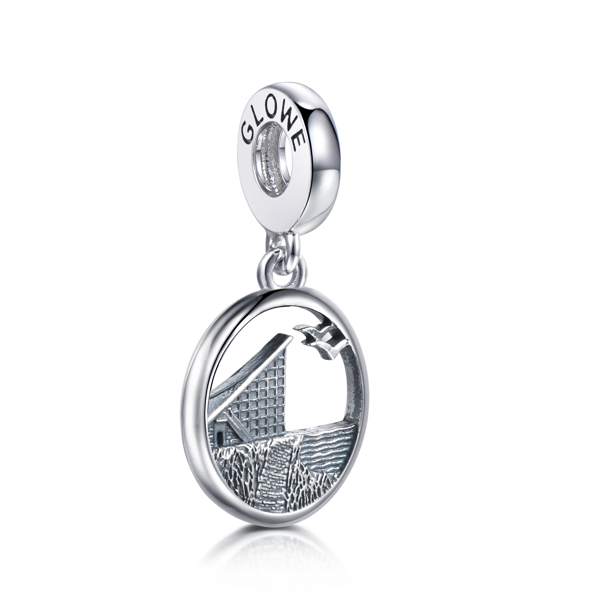 Am schönsten wirkt der Glowe-Charm am Armband A1134 oder an der mittleren Schlangenkette K2925. So kommt die Szene mit dem ikonischen Bauwerk besonders gut zur Geltung.